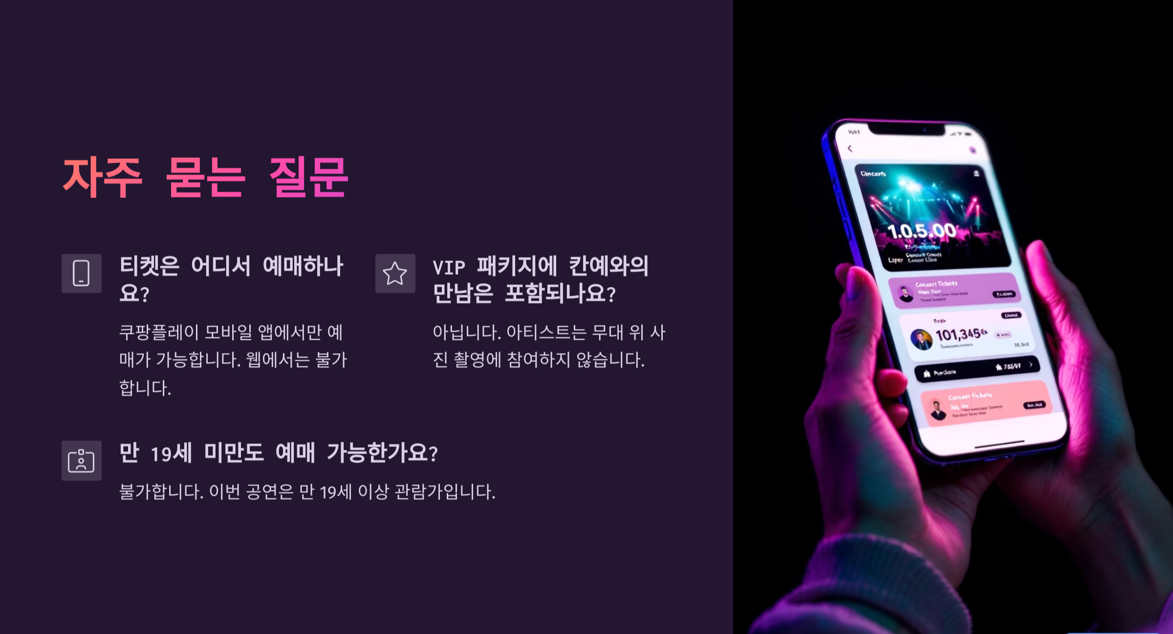 - 무대 위 사진 촬영 기회 (단, 아티스트는 무대에 참여하지 않음)