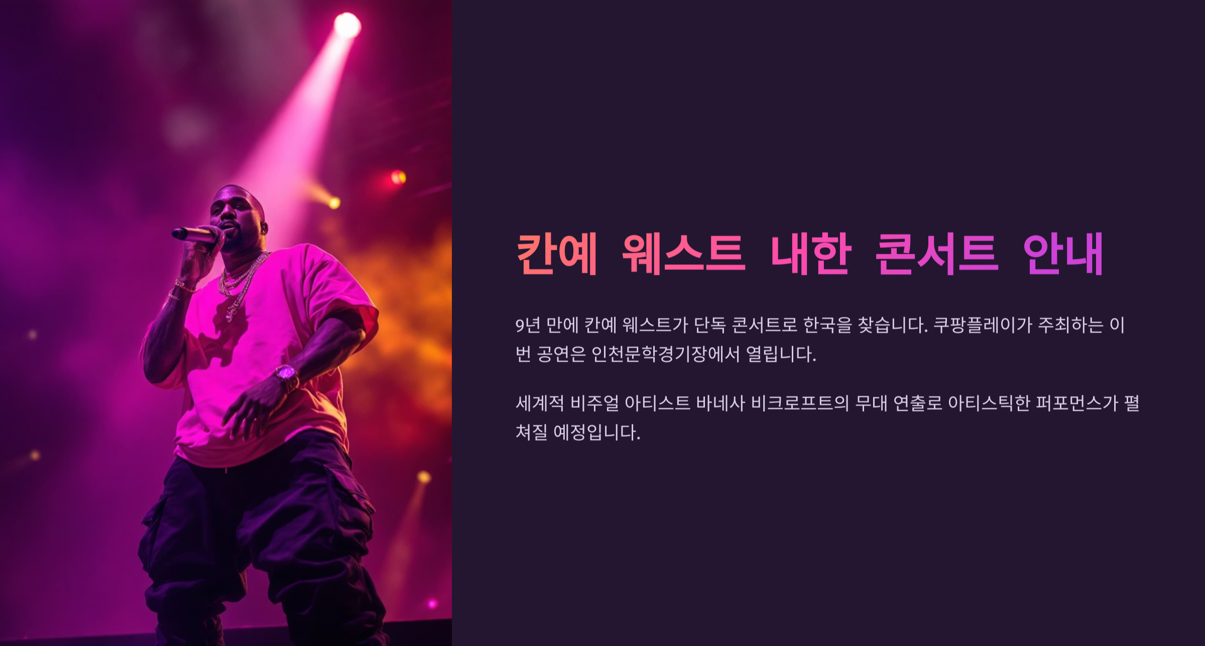 칸예 웨스트의 단독 콘서트를 직접 보고 싶으셨다면, 이번이 정말 놓칠 수 없는 기회입니다.